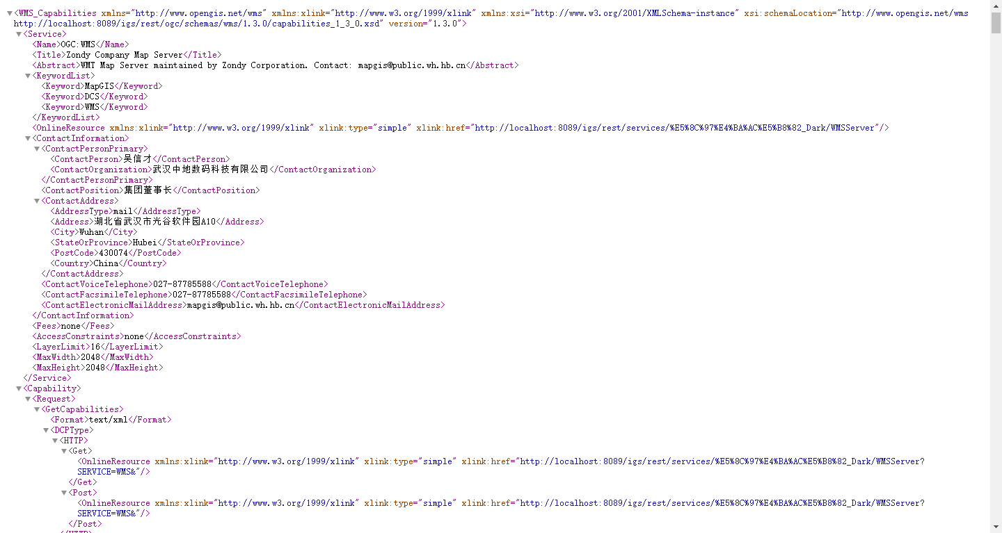 - 发布WMS服务成功后,点击进入服务详情页面,点击WMS服务的服务地址,可进入查看WMS服务基地址页面。