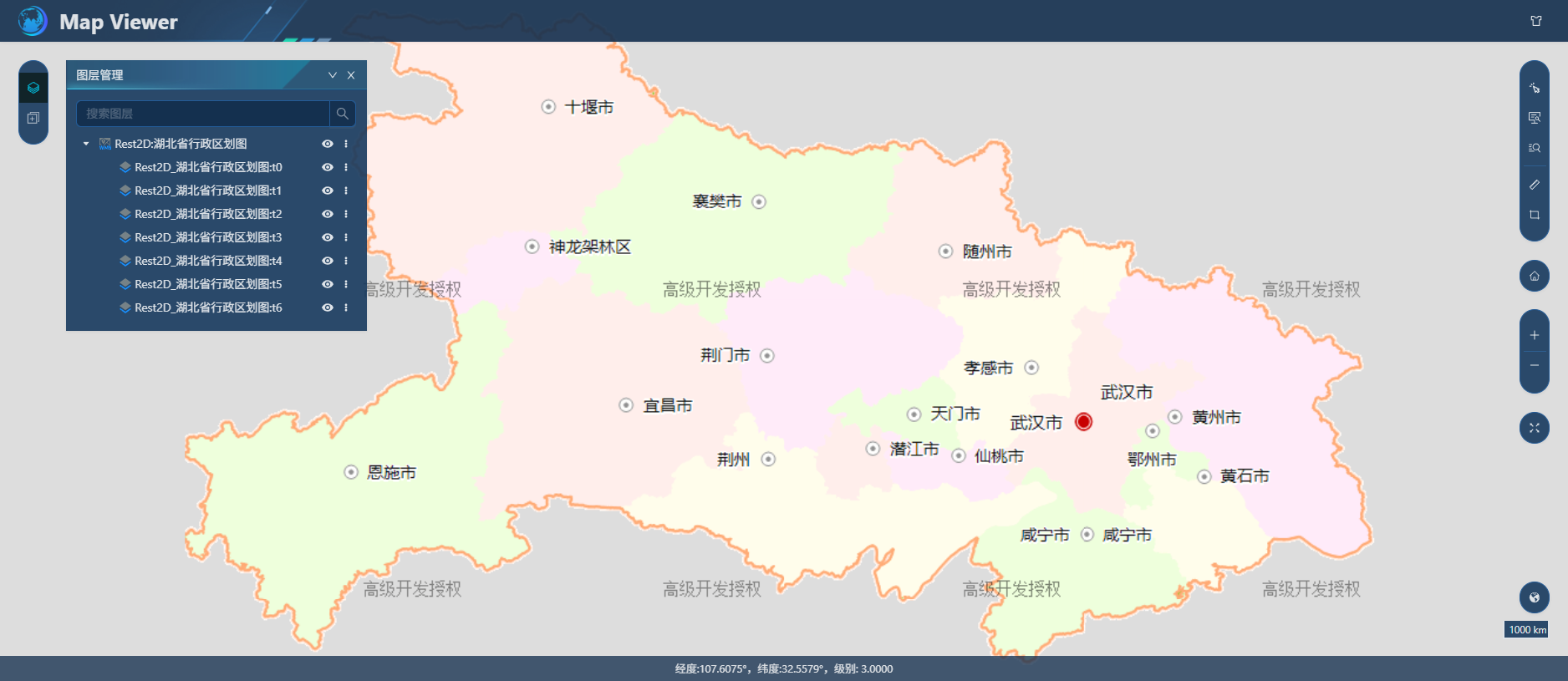 - 发布OGCWMS服务成功后,页面重新回到服务列表。点击当前服务右侧的"预览"按钮,可进入 Map Viewer页面。具体操作可参考"服务预览"。
