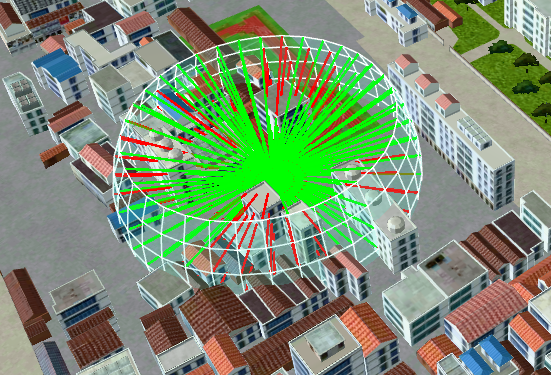 4. 点击"环形通视分析",在场景视图中交互绘制圆心和半径,可显示环形通视分析结果: