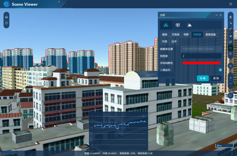 3. 调整到合适显示视角,点击"分析",即可生成天际线。