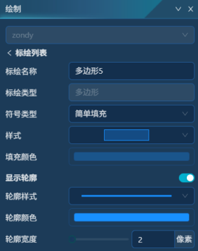 - 显示轮廓:开启后,可显示区轮廓线。可设置轮廓线颜色及宽度信息。