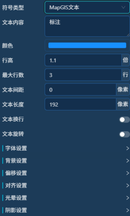 - 符号类型:系统提供了 文本 和 MapGIS文本 两种文本类型:
