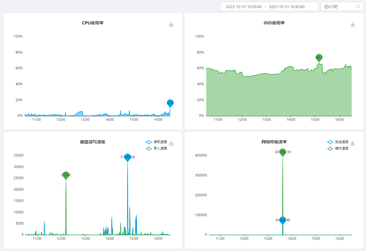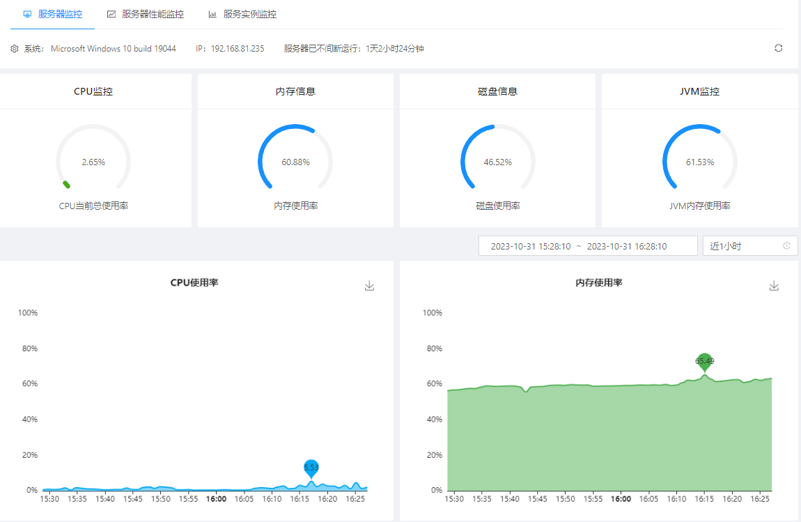 1. 在【监控】页面,点击【服务监控】,页面中会显示计算机的实时性能信息;