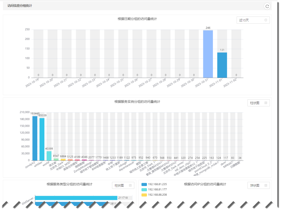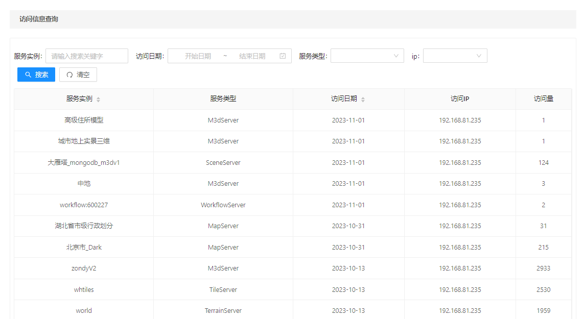 服务实例监控提供了IGServer服务器中访问信息分组统计和访问信息查询功能。