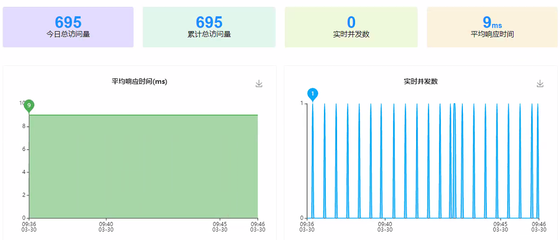 1. 在【监控】页面,点击【服务性能监控】,页面中会显示服务的使用信息: