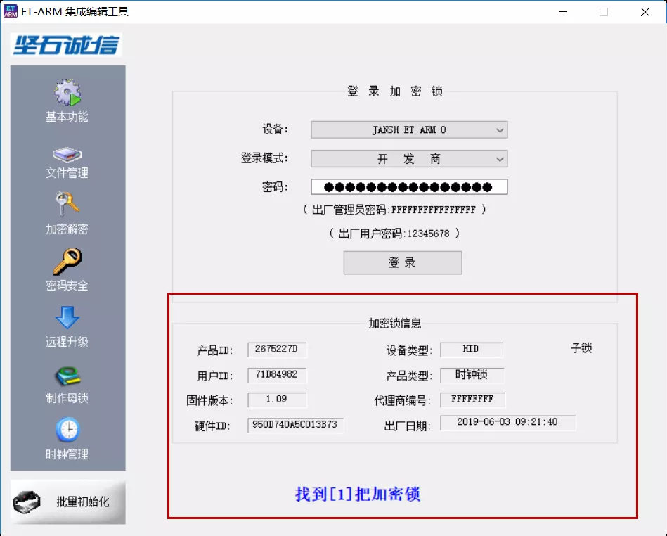 答:使用硬Key授权时,服务器必须能读取硬Key的USB设备。可用【etarm_sdk】等第三方工具,检测是否能读取USB设备: