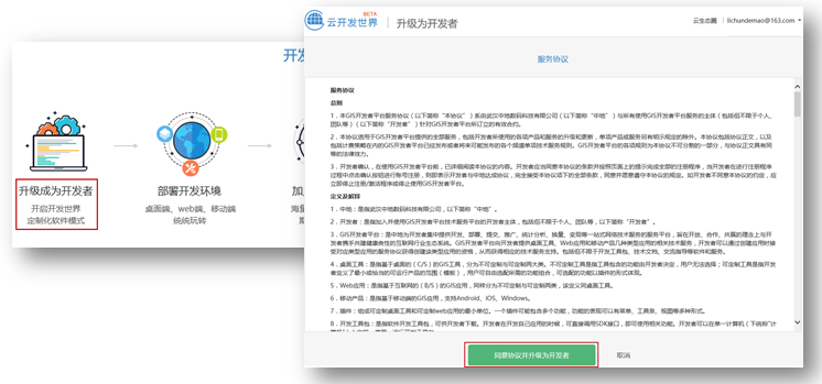 云开发授权是和MapGIS 10产品开发包绑定使用的,基于云开发授权,可直接使用MapGIS 10产品或进行二次开发。注册Smaryun账户后,可在云开发世界升级为开发者,升级为开发者后,才可以下载获取云开发授权,且一个Smaryun开发者账户对应一份云开发授权。