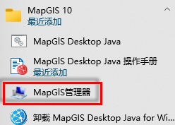 3. 在windows开始菜单中,点击“MapGIS管理器”,启动“MapGIS管理器”。