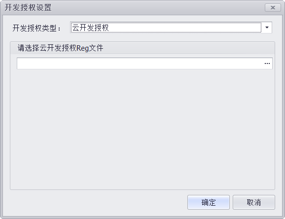 4. 启动“开发授权”->“配置”功能,选择“云开发授权”,导入下载的“*.reg”开发授权文件后,即可正常完成云开发授权的认证。