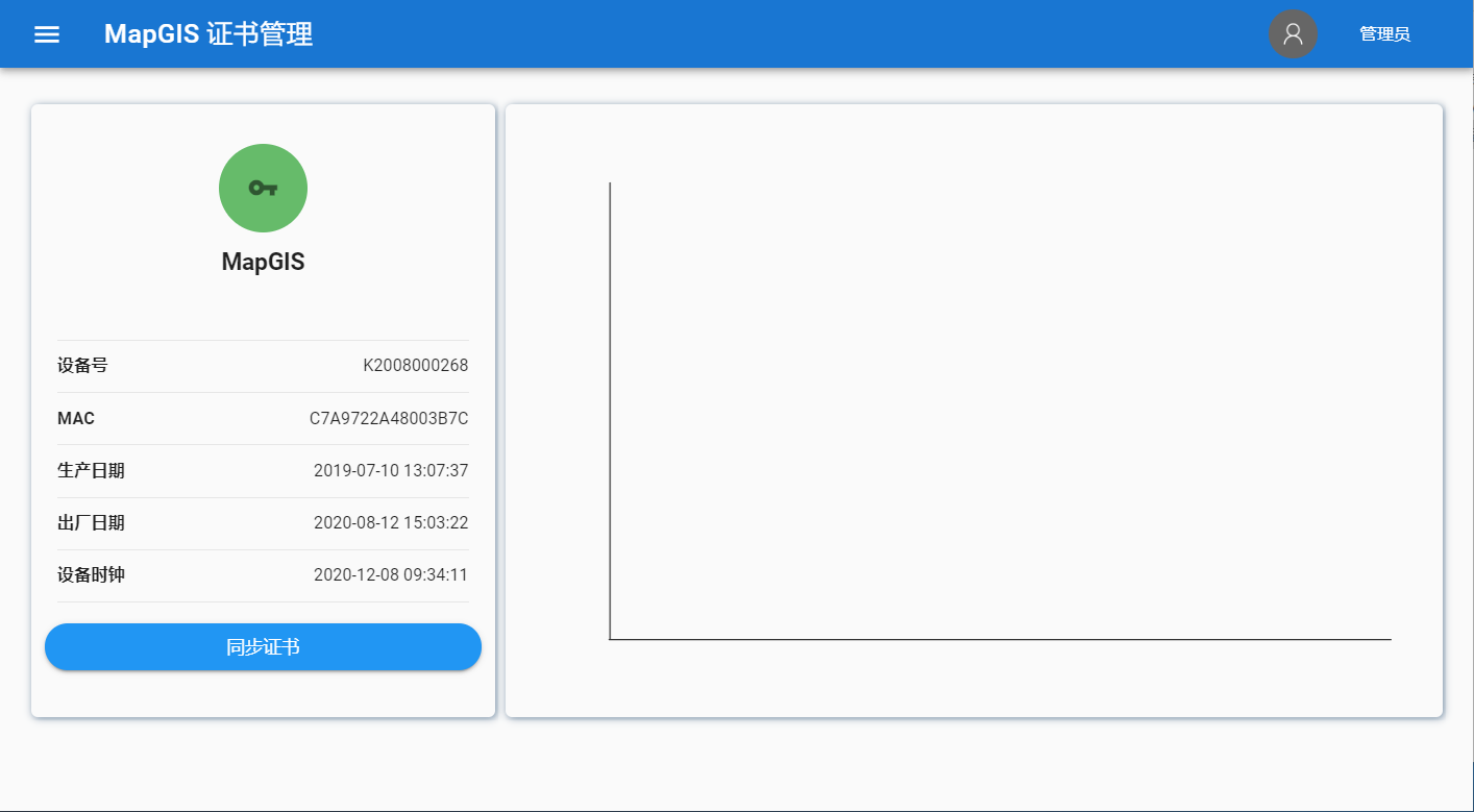 2. 打开浏览器,在地址栏输入http://授权服务器IP:端口即可,如http://127.0.0.1:8080,进入站点,插入硬Key的USB设备,在MapGIS证书管理界面可查看到硬Key设备信息。