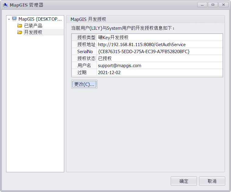 - 硬Key开发授权和硬Key授权采用同一个认证服务器进行管理,因此不能在一台服务器上同时安装这两个授权类型。