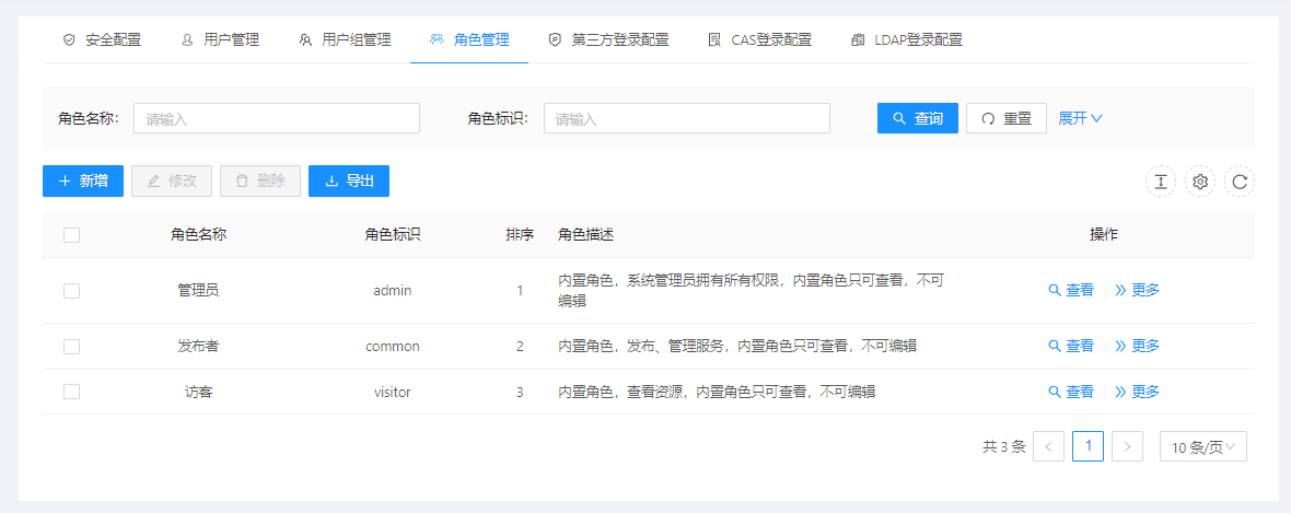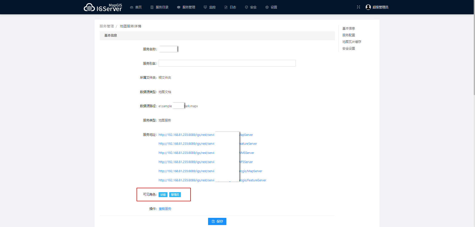 - 发布者:服务发布者角色,只拥有发布、管理服务权限;