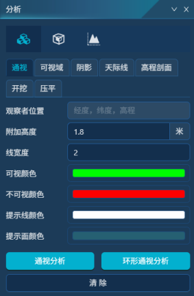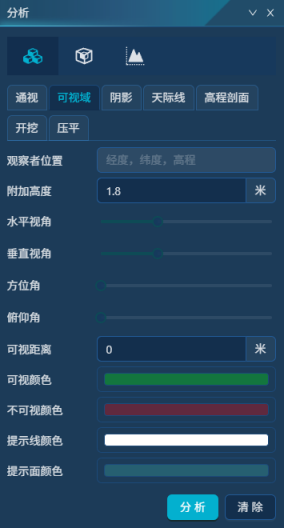 4. 点击"清除"按钮,可清除场景中的所有分析结果。
