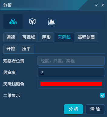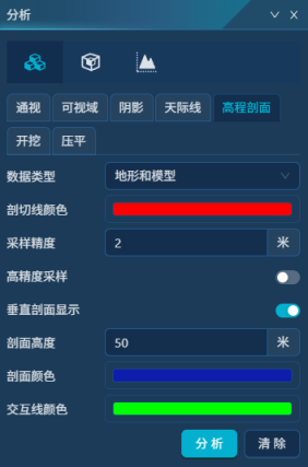 5. 点击"清除"按钮,可清除场景中的所有分析结果。