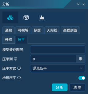 1. 进入SceneViewer视图,点击右侧工具栏的"分析 "功能,切换到"压平"面板: