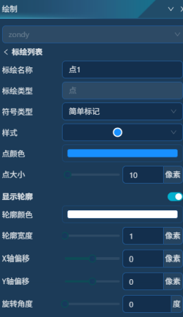 - 显示轮廓:开启后,可显示点轮廓线。可设置轮廓线颜色及宽度信息。