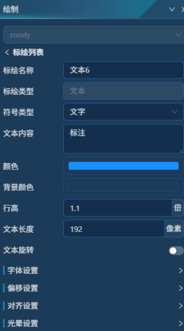 ④文本:可左键单击交互绘制文本。文本参数信息如下: