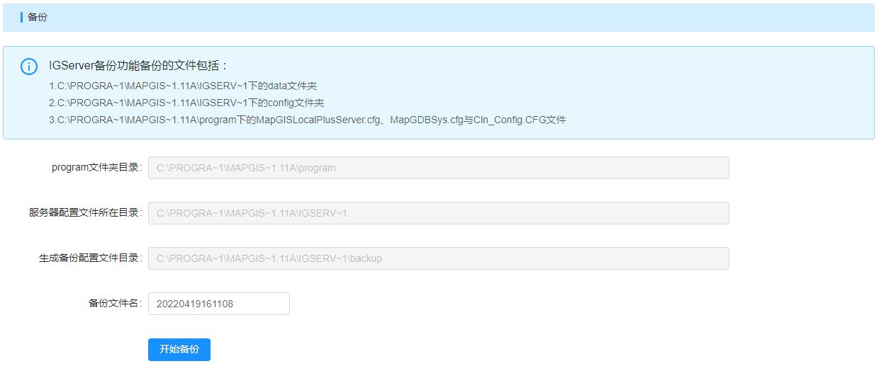 通过此功能,可备份/恢复已发布的服务信息及IGServer配置信息。
