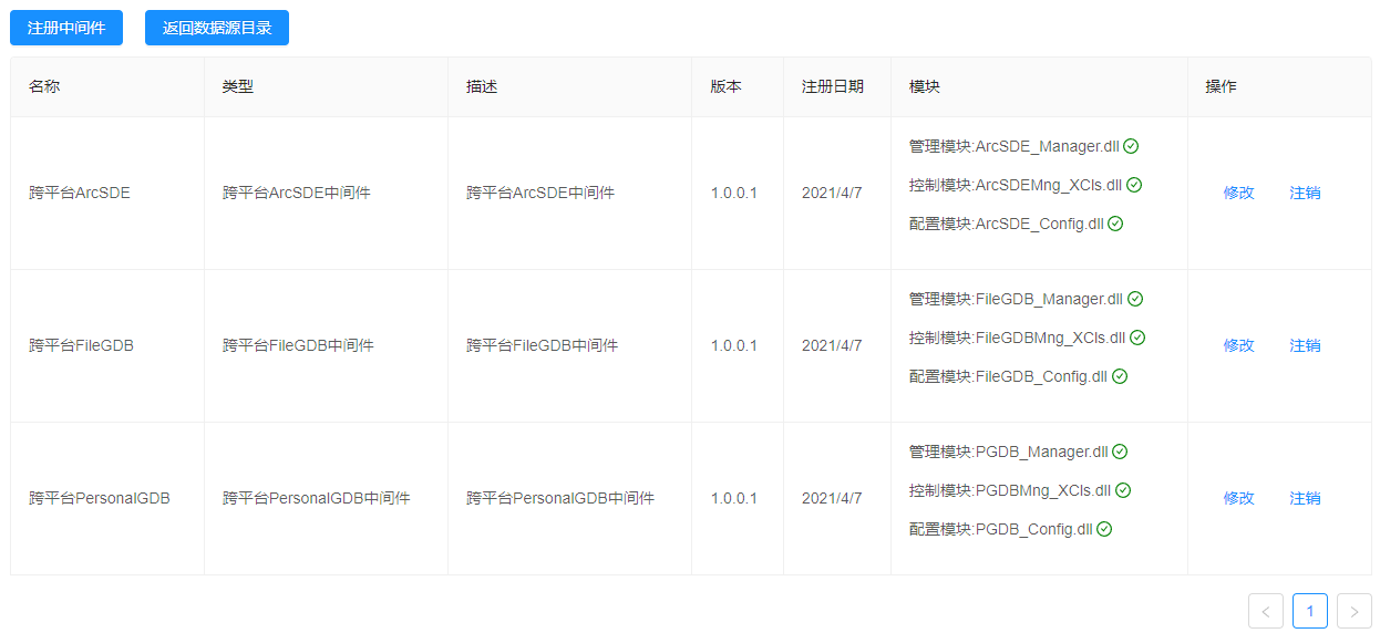 3. 点击列表中某个中间件后的【修改】,可编辑中间件注册信息;