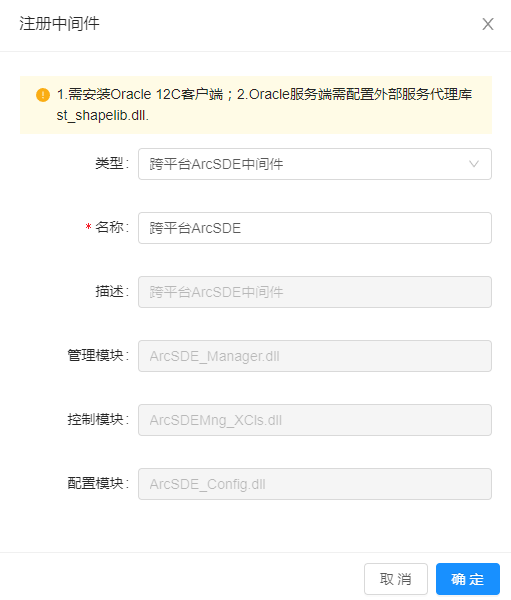 2. 若中间件信息丢失,点击【注册中间件】,可注册中间件;