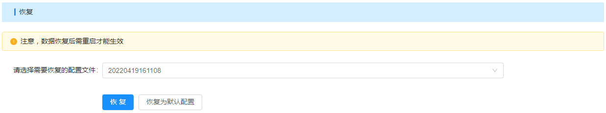 2. 备份后,通过下拉框选择待恢复的版本,点击【恢复】,即可还原到指定版本;
