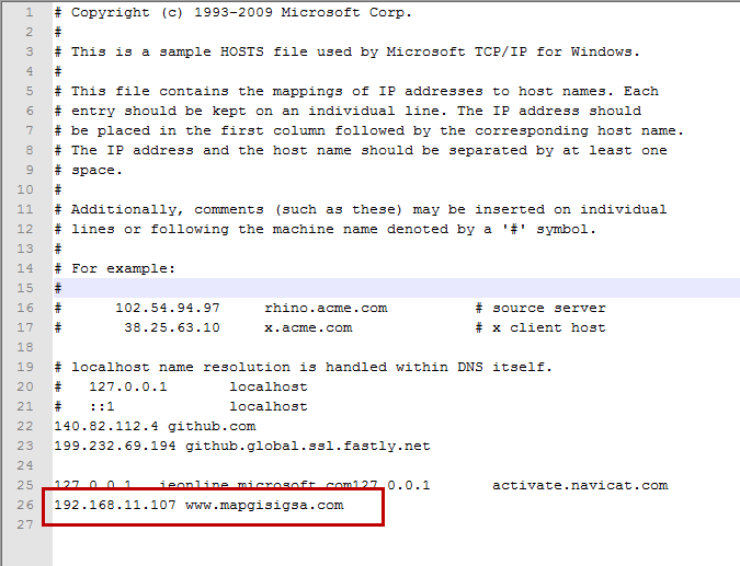 假设有客户机A,IP地址为192.168.11.107,已安装MapGIS IGServer。现希望在局域网内,通过"www.mapgisigsa.com"地址访问客户机A的IGServer站点。