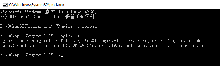 4. 设置完成后,进入Nginx文件夹。需通过如下命令,重新读取Nginx配置文件,并验证设置的有效性。