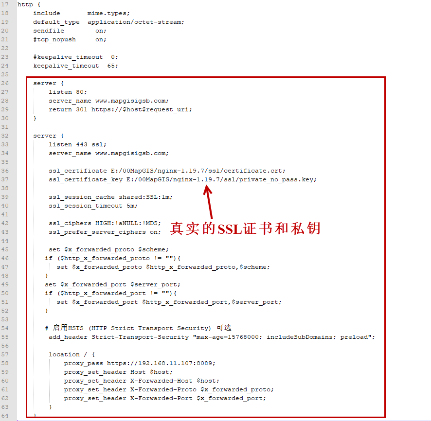 2. ssl_certificate和ssl_certificate_key需指定为真实的SSL证书和私钥。