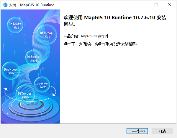 - 双击MapGIS 10运行时的“*.exe”文件,安装MapGIS 10产品的运行时;