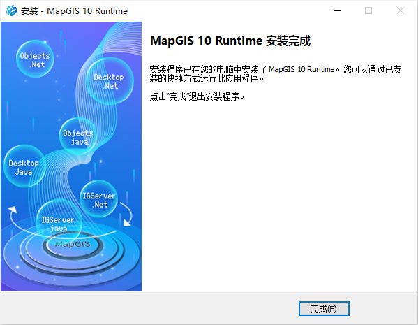 - 点击"安装",即可进行MapGIS 10运行时安装,直至完成;